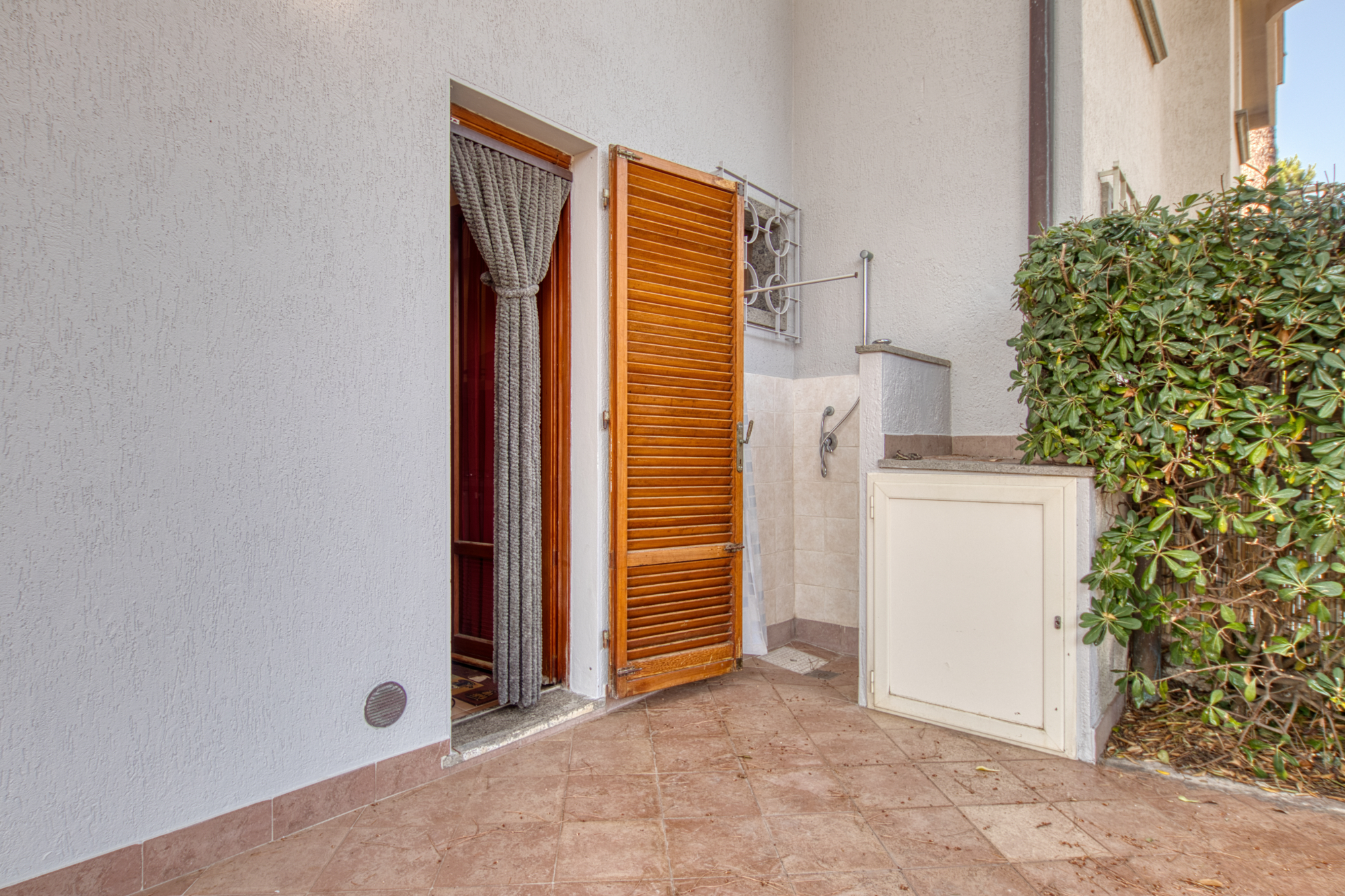 The house is equipped with a washing machine and outdoor shower.