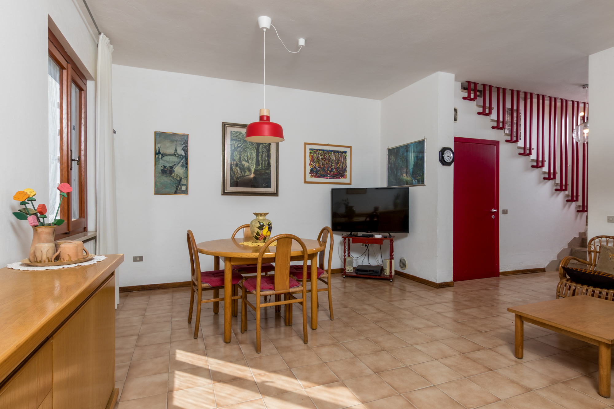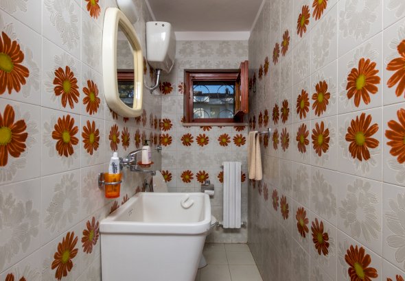 It consists on the ground floor of: living room with sofa bed for 1 person, TV, kitchenette, and windowed bathroom with shower.