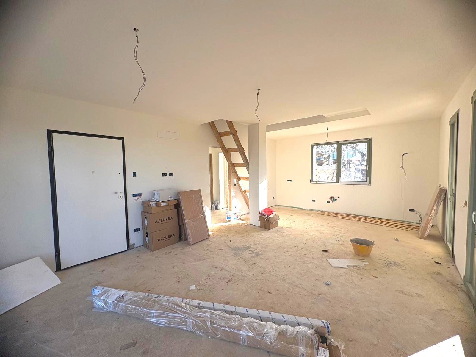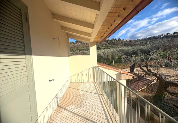 Building B - VILLETTA SAN GIOVESE : It has an entrance into the private garden, a large patio for relaxing outdoors, a bright living room, kitchen, living room, ante-bathroom and bathroom with shower. On the first floor there are two double bedrooms, one of which has access to the sun terrace with a view of the sea and the coast, small bedroom and bathroom with shower.