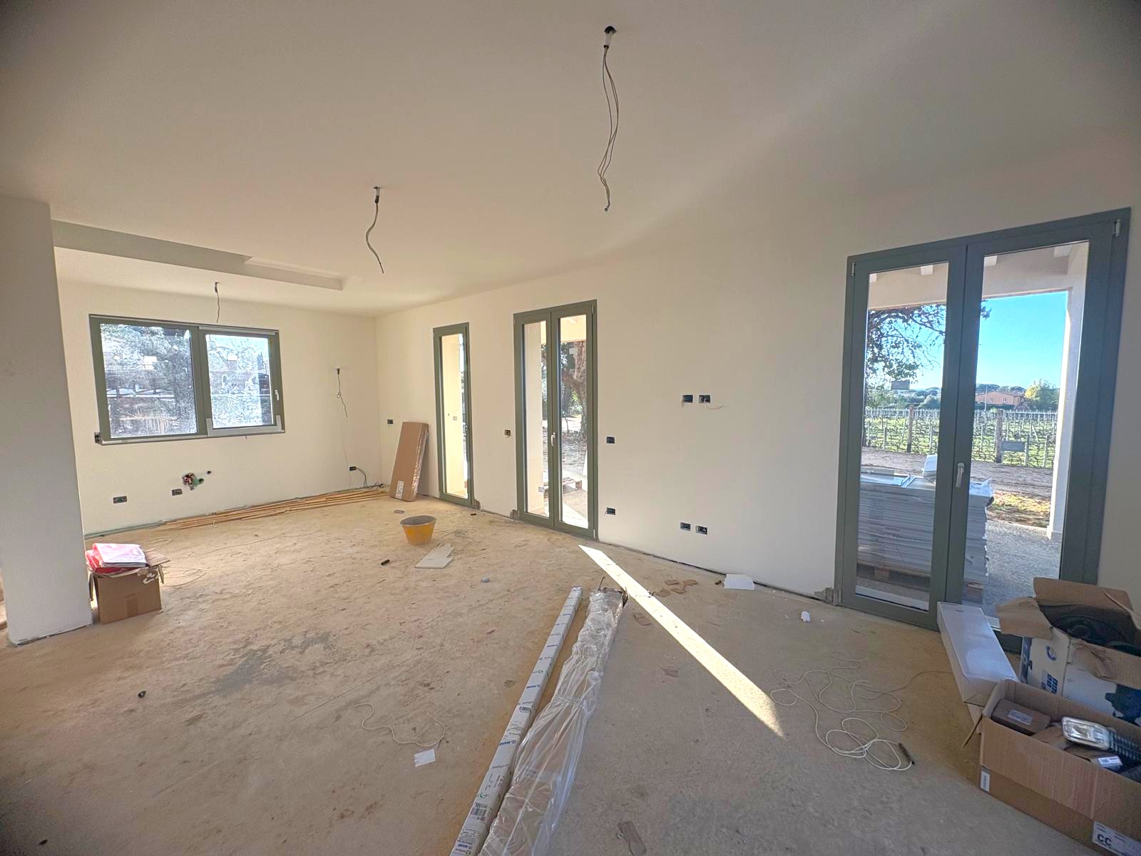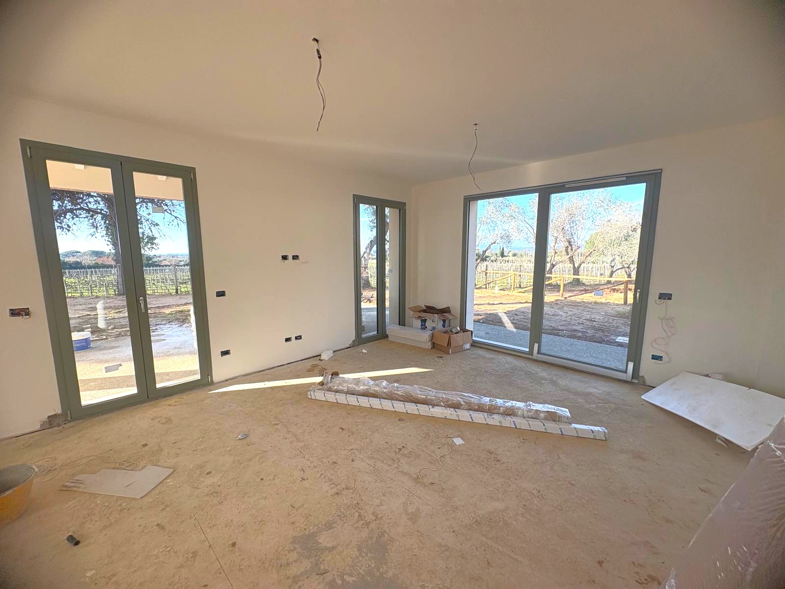 Building A1 - VILLETTA SYRAH : In a semi-detached house, it has an entrance into the private garden, a large patio to enjoy relaxing outdoors, bright living room with kitchen, double bedroom, study room and bathroom with shower, from the living room there is access to the attic. The villa is equipped with air conditioning , underfloor heating system and photovoltaic system. It has 2 parking spaces covered by a canopy. Possibility of installing a swimming pool, permit already approved. Request Euro 675,000.00 excluding VAT