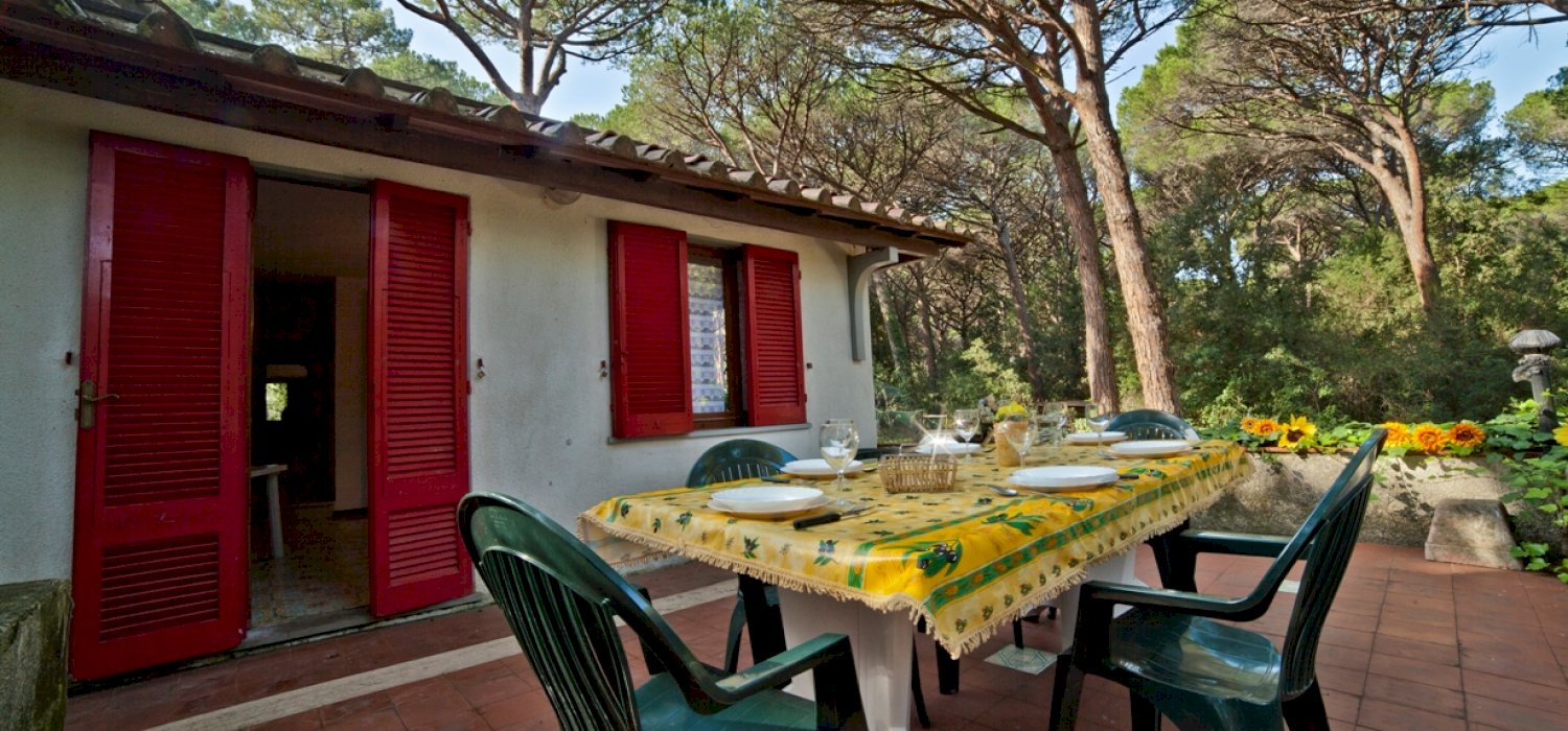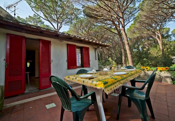 Totalmente immersa nella tranquillità della pineta, a 300 metri dal mare, VILLA ROSSA è una villa bifamiliare che si sviluppa su due livelli con grande giardino angolare privato attrezzato di barbecue e doccia, terrazza atterezzata per stare e mangiare fuori.