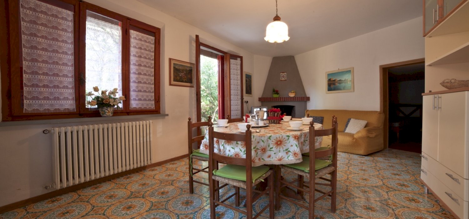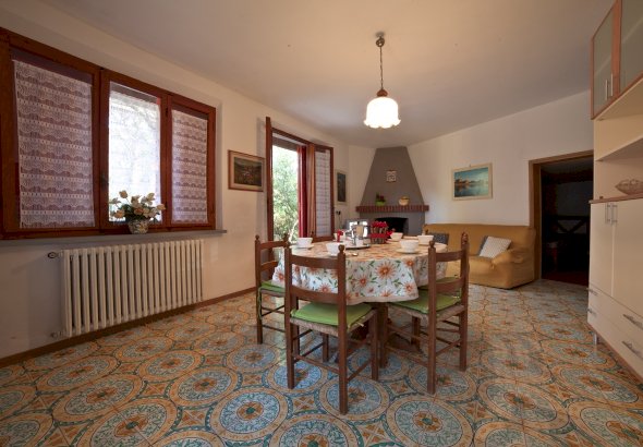 Al piano terra rialzato soggiorno con camino, tv, cucinotto ed una camera con letto matrimoniale.