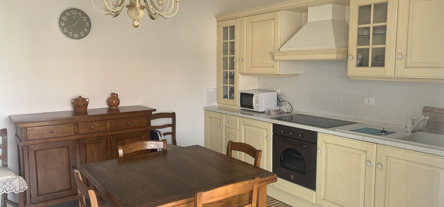Nella nuova zona residenziale, comodo ai servizi e vicino alla pista ciclabile. Trilocale con ottime rifiniture, posto al 1° piano con ingresso indipendente al piano terra da resede privata con doccia esterna, così composto: ampia terrazza pranzabile attrezzata di tenda solare da cui si gode una piacevole vista, soggiorno con angolo cottura, dotato di lavastoviglie, lavatrice, frigo con freezer, forno elettrico, forno a microonde, camera da letto matrimoniale e balcone, camera con divano letto matrimoniale, bagno finestrato con doccia.