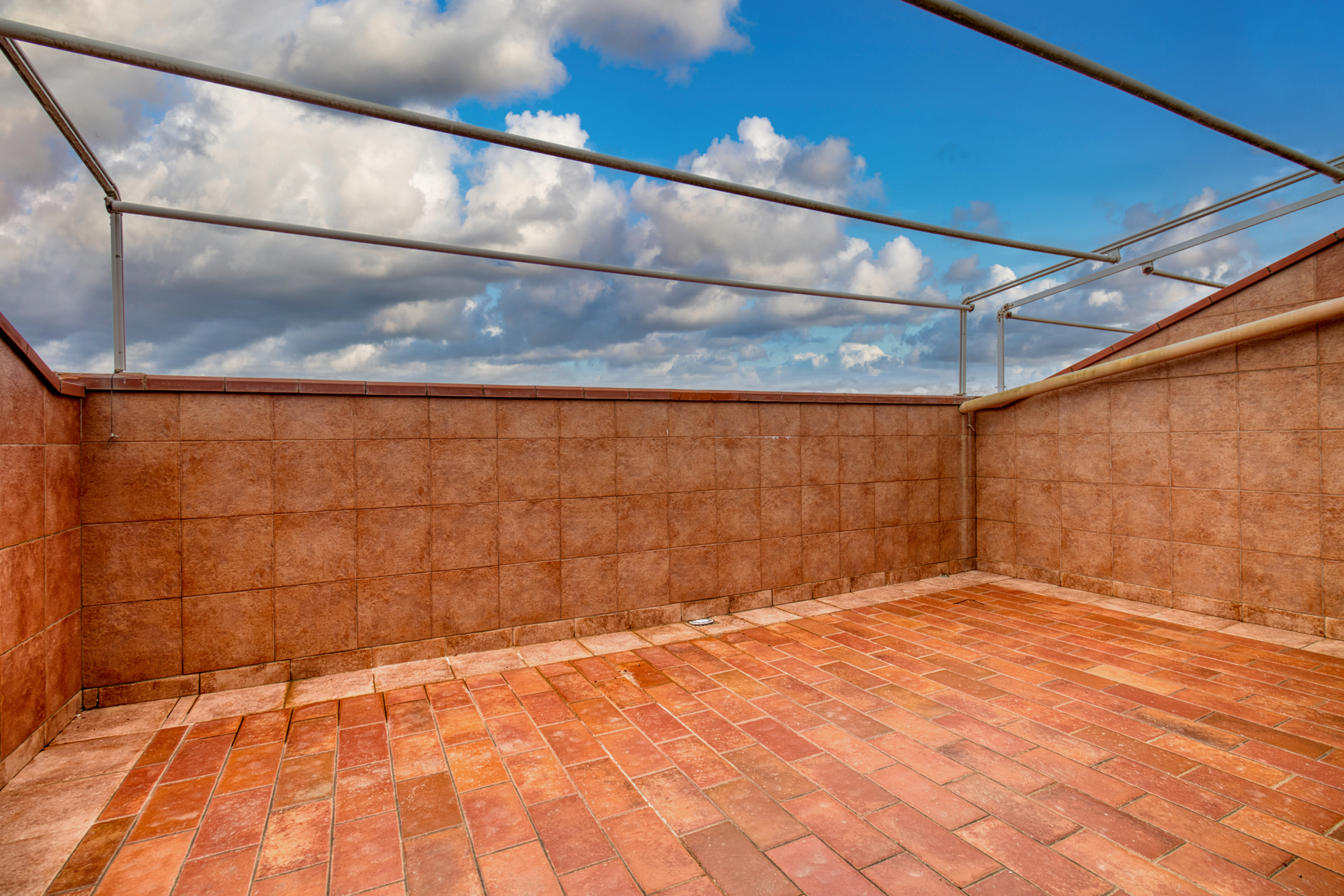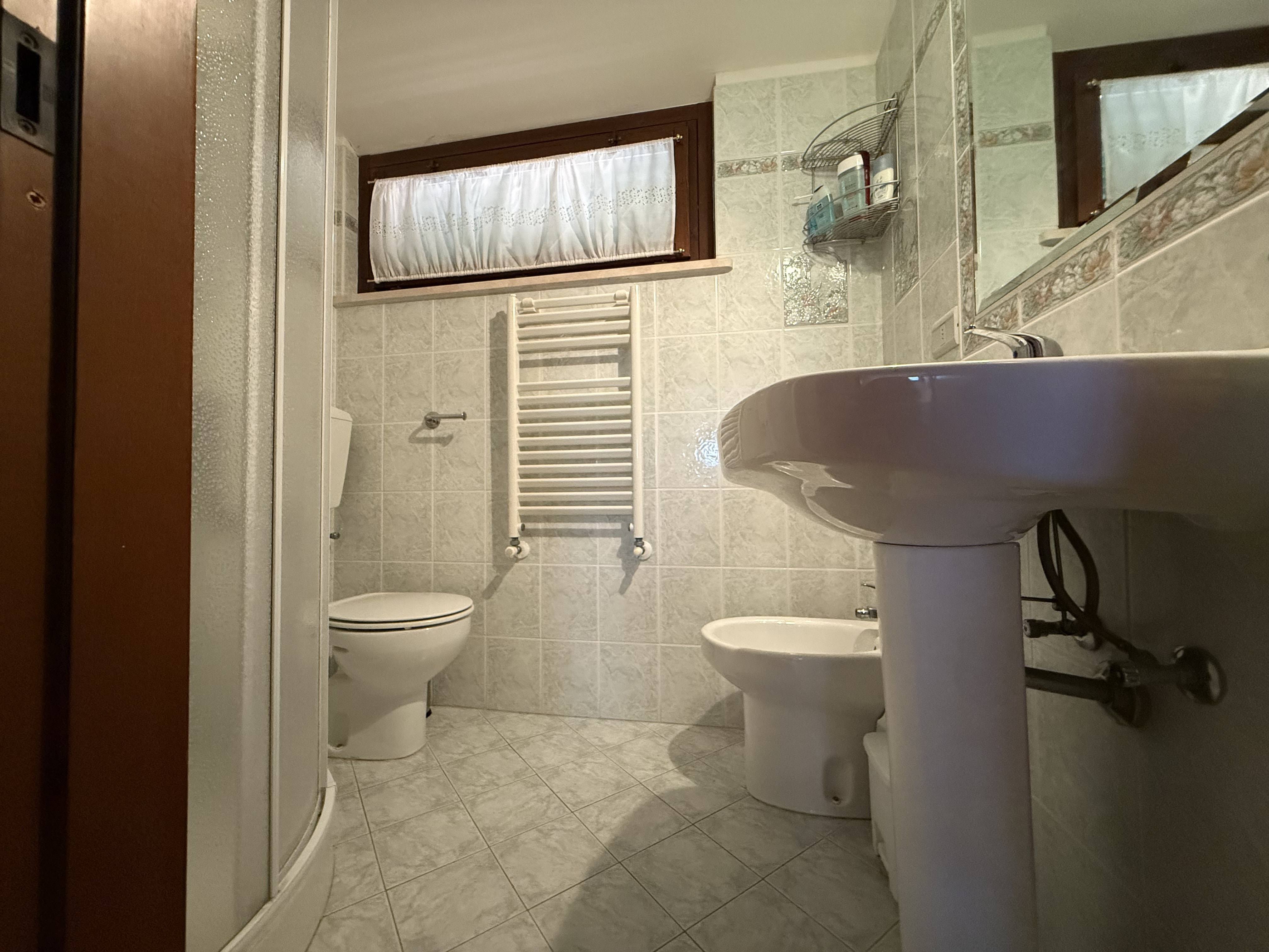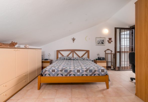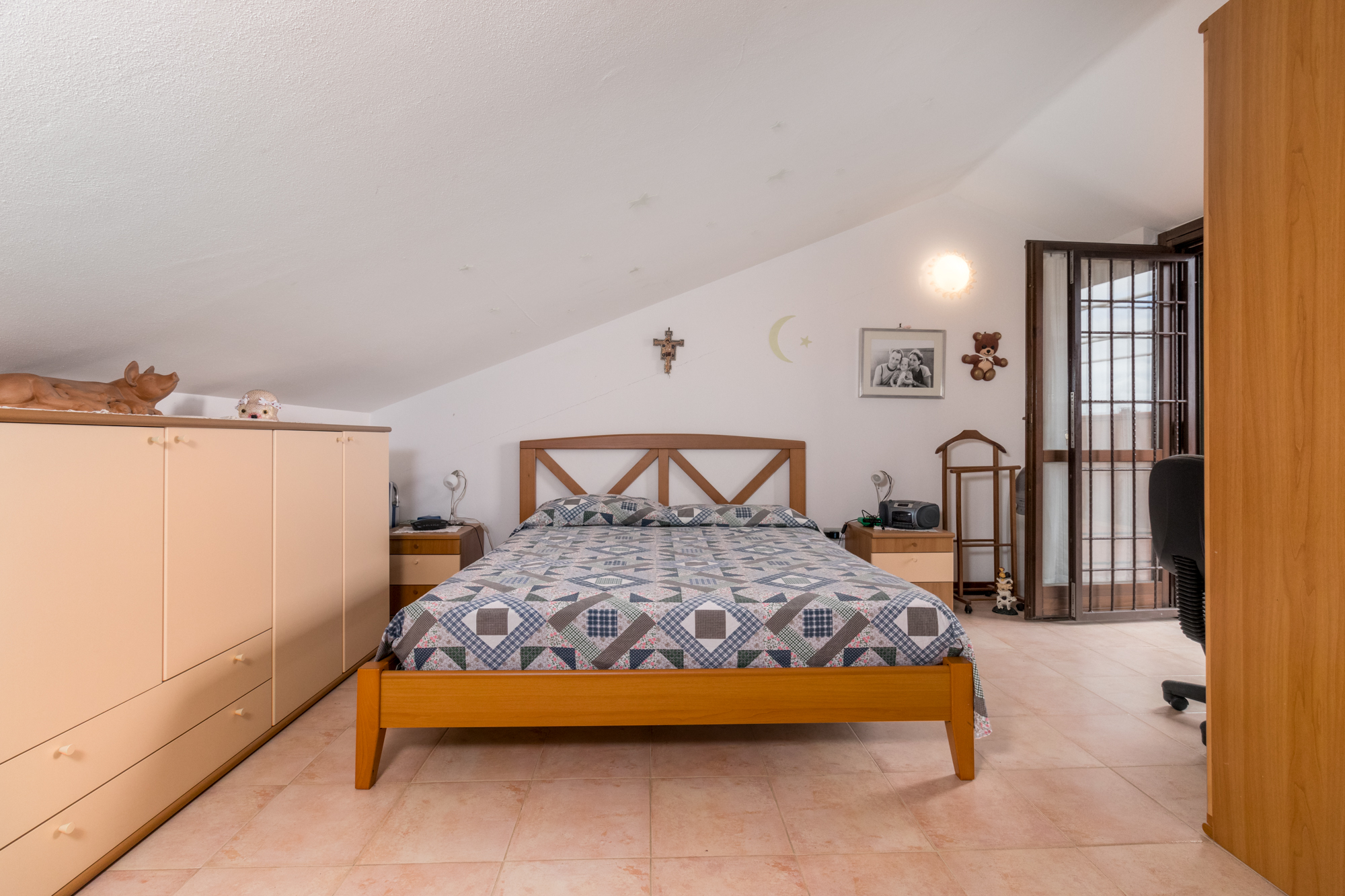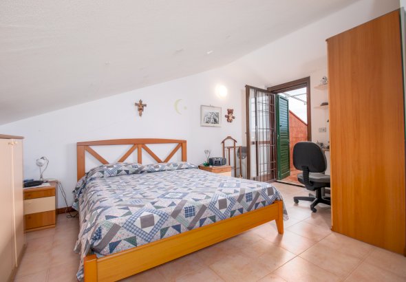 Dal soggiorno mediante le scale si accede ad un'ampia mansarda, dove troviamo un vano adibito a bagno finestrato con doccia ed un' ampia terrazza solarium.