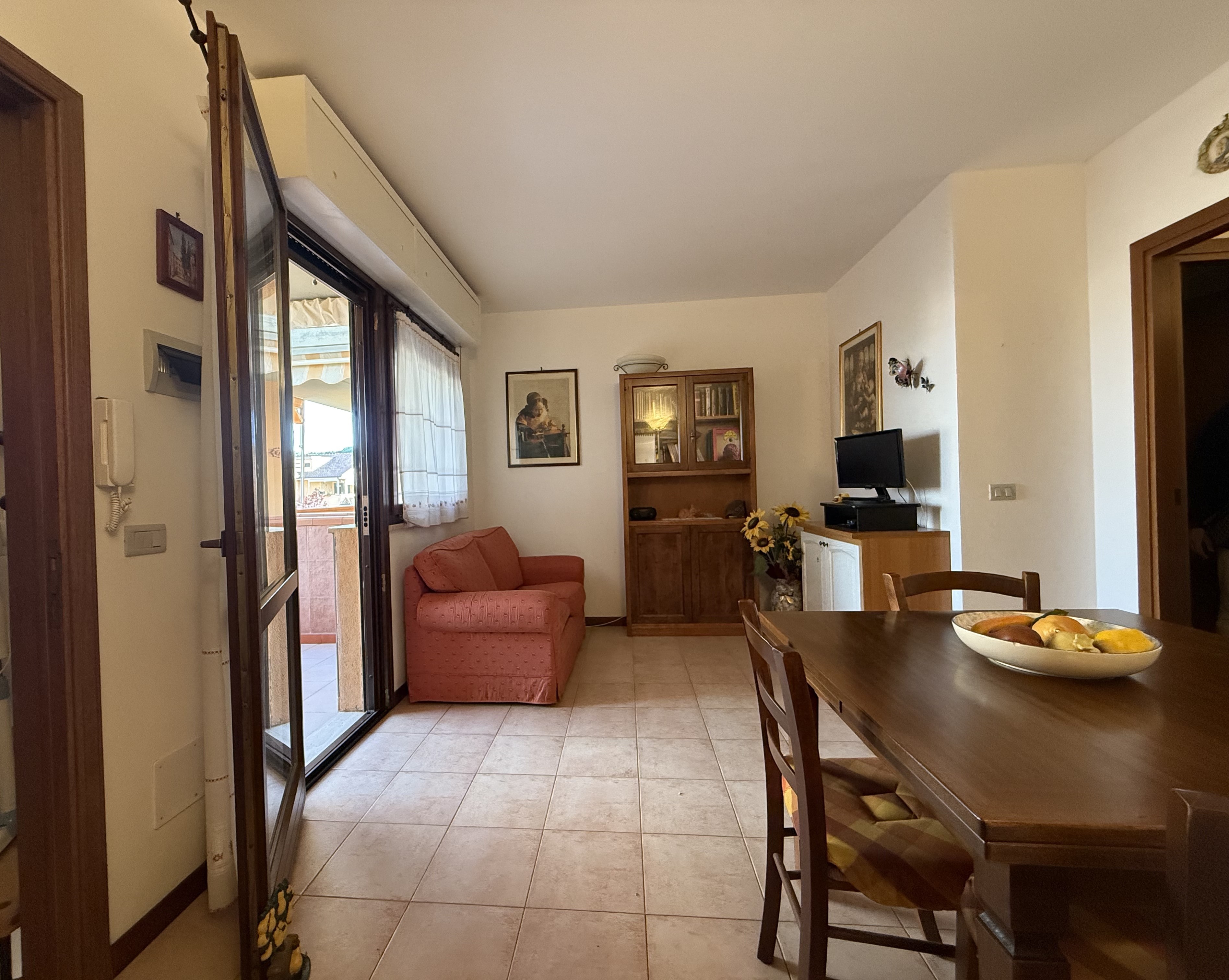 Salendo con ampia e comoda scala interna, arriviamo al primo piano dove troviamo il soggiorno con angolo cottura con accesso ad un' ampia terrazza pranzabile coperta, disimpegno, camera matrimoniale con terrazza, vano finestrato adibito a cameretta e bagno con doccia.