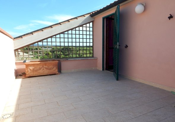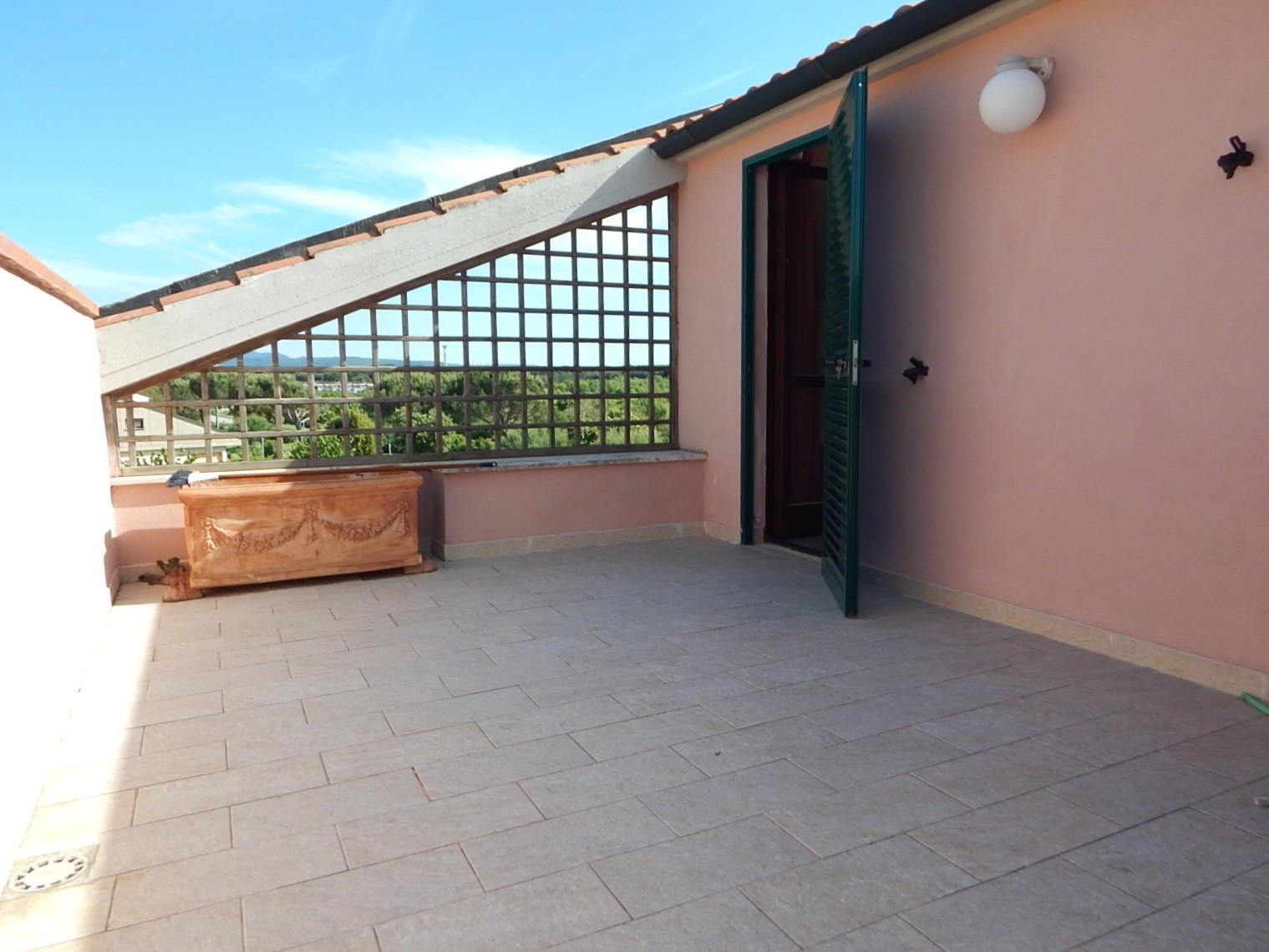 Dal soggiorno mediante le scale si accede ad un'ampia mansarda, dove troviamo un vano adibito a bagno finestrato con doccia ed un' ampia terrazza solarium.