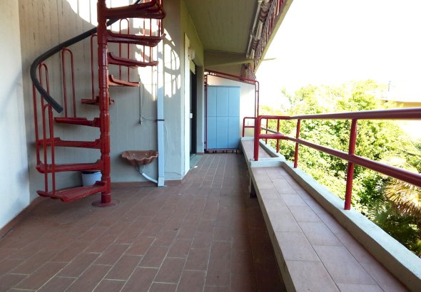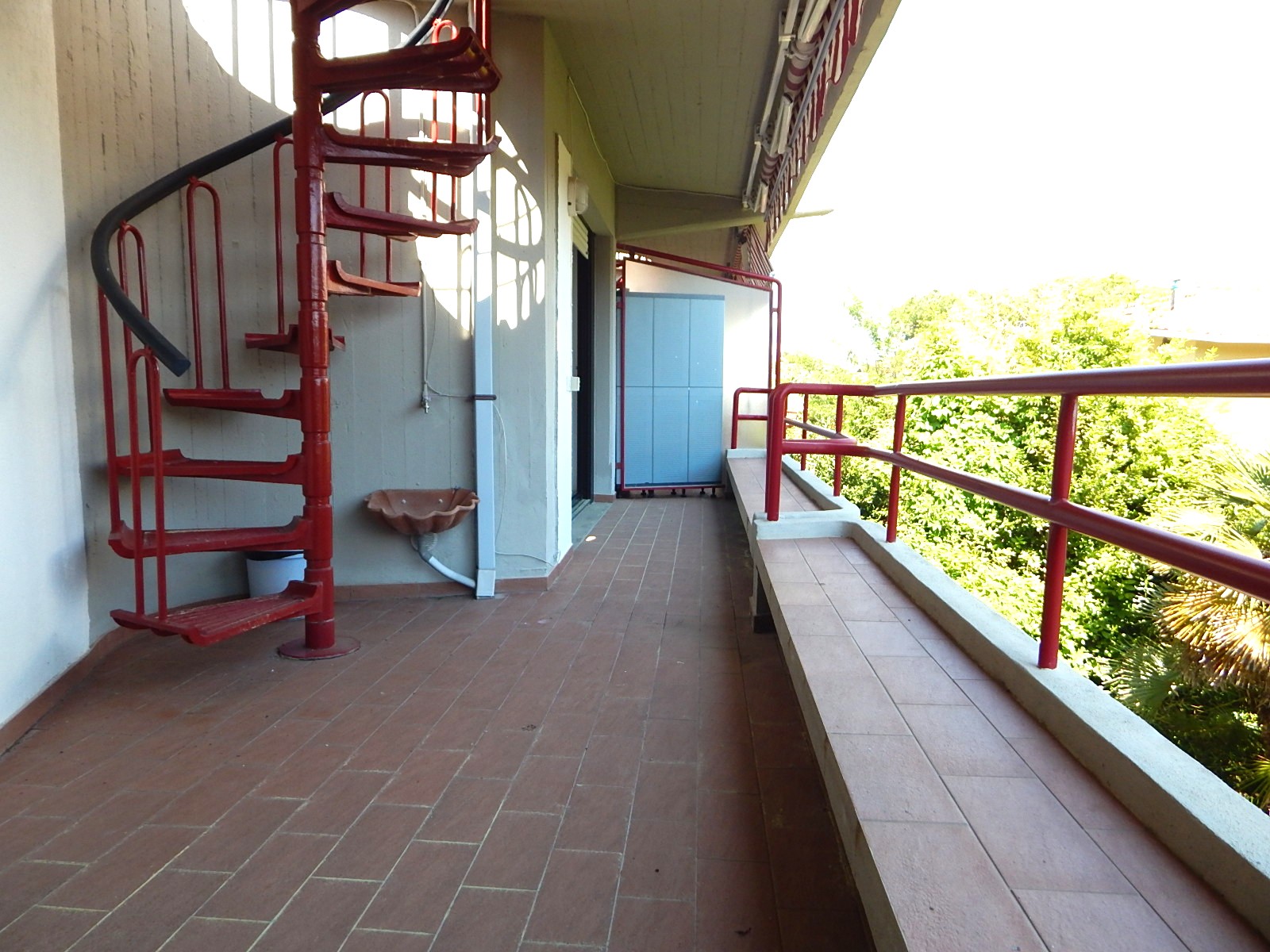 L'appartamento si compone di: ampio e luminoso soggiorno con accesso ad una grande terrazza dalla quale con scala si raggiunge un ulteriore terrazzo a tetto, cucina, camera matrimoniale, bagno finestrato con doccia, seconda camera con ripostiglio finestrato adibito a bagno.