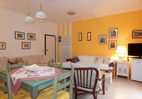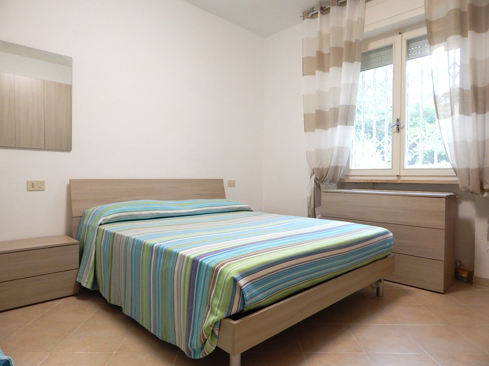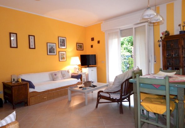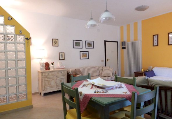 L'appartamento si compone di grande soggiorno con cucina a vista con accesso all'ampio giardino angolare, disimpegno per la zona notte dotata di due camere matrimoniali e bagno finestrato con doccia.