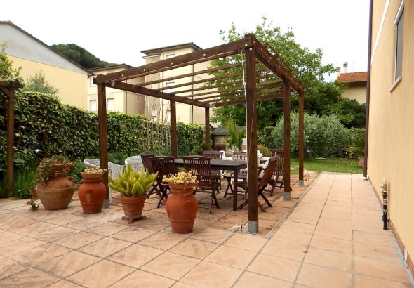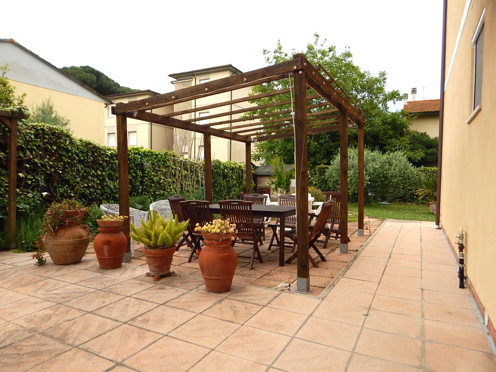 Marina di Castagneto Carducci - zona Cavallino Matto, a poca distanza dalla pista ciclabile per raggiungere comodamente il mare, si vende ampio trilocale al piano terra angolare con grande giardino attrezzato di tenda solarium, pergolato per stare e mangiare fuori, lavabo in muratura, barbecue ed una casetta in legno per il ricovero biciclette , attrezzi e con attacco della lavatrice.