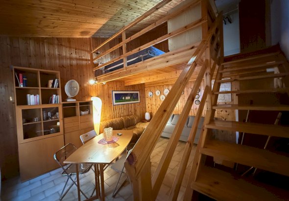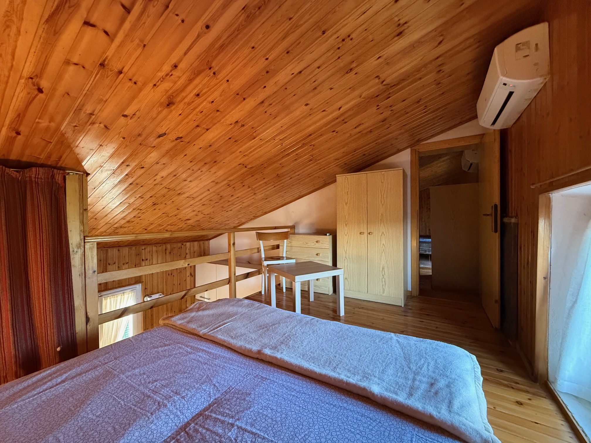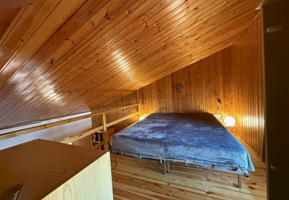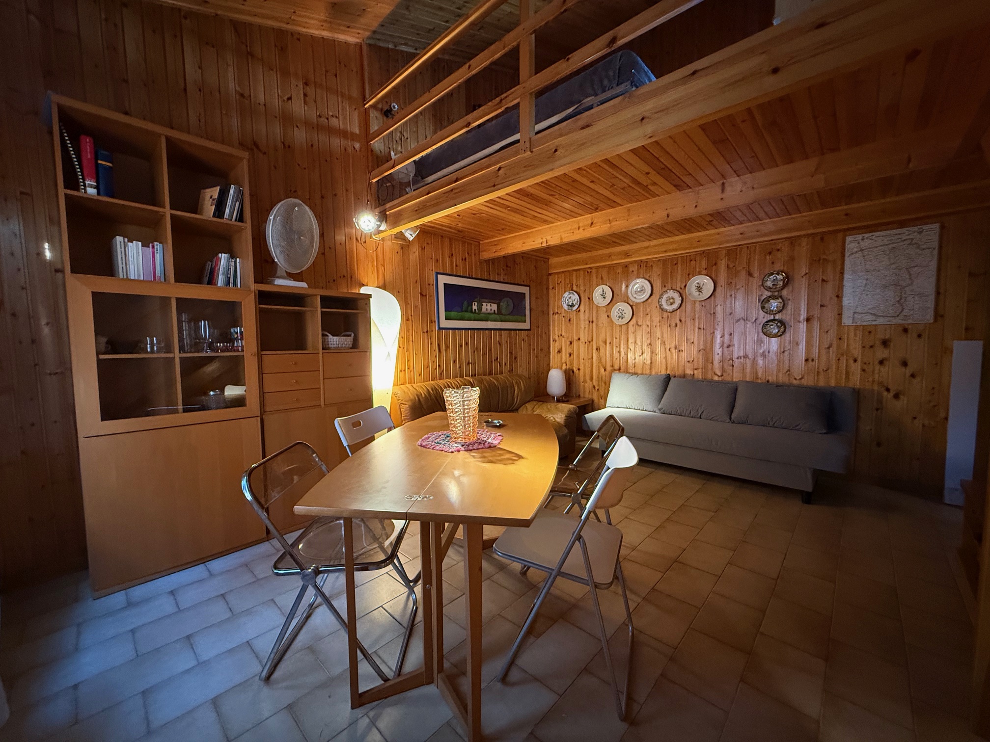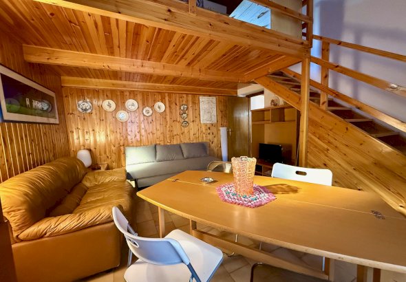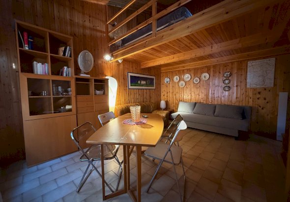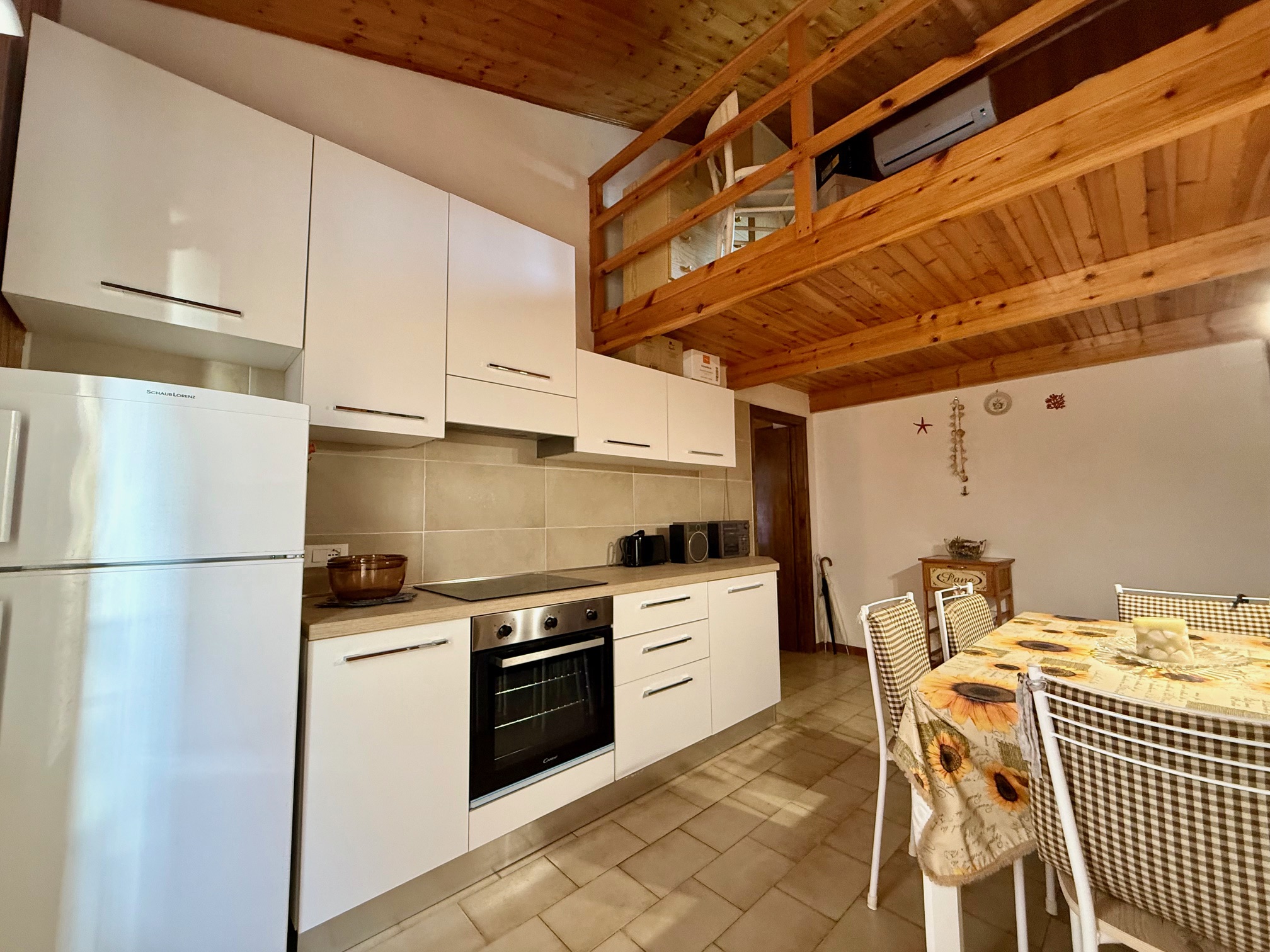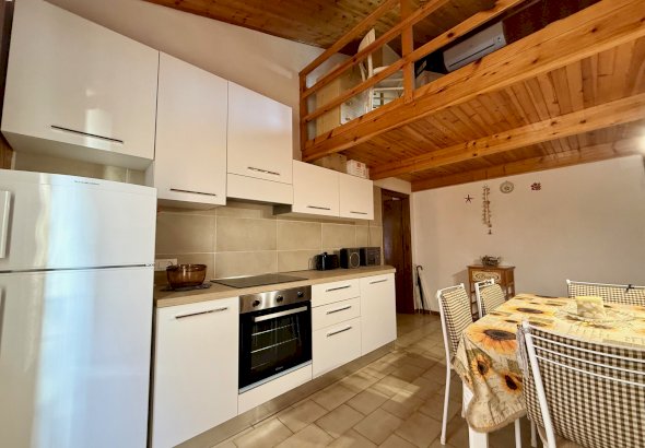 Si compone di: cucina abitabile con piano a induzione, forno, frigo e freezer, soggiorno con divano letto a due piazze e tv, mediante scala in legno si accede al soppalco con letto matrimoniale ed un'altra stanza con letto matrimoniale, bagno con doccia.