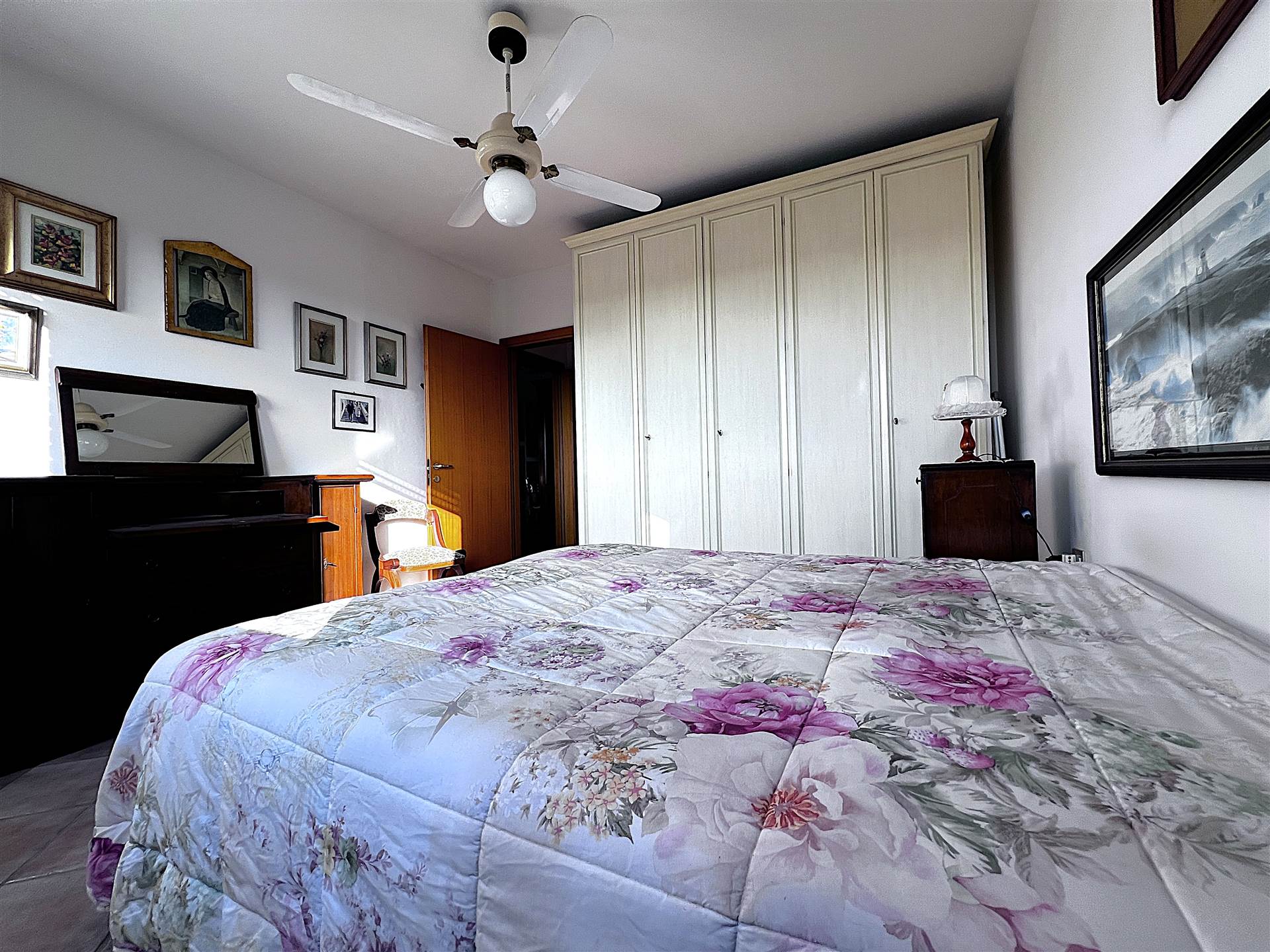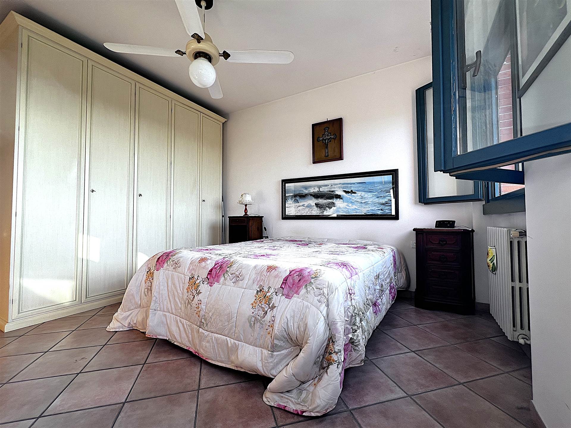 Dal corridoio si accede alla zona notte, con una spaziosa camera matrimoniale con doppia finestra, e un bagno finestrato con doccia.