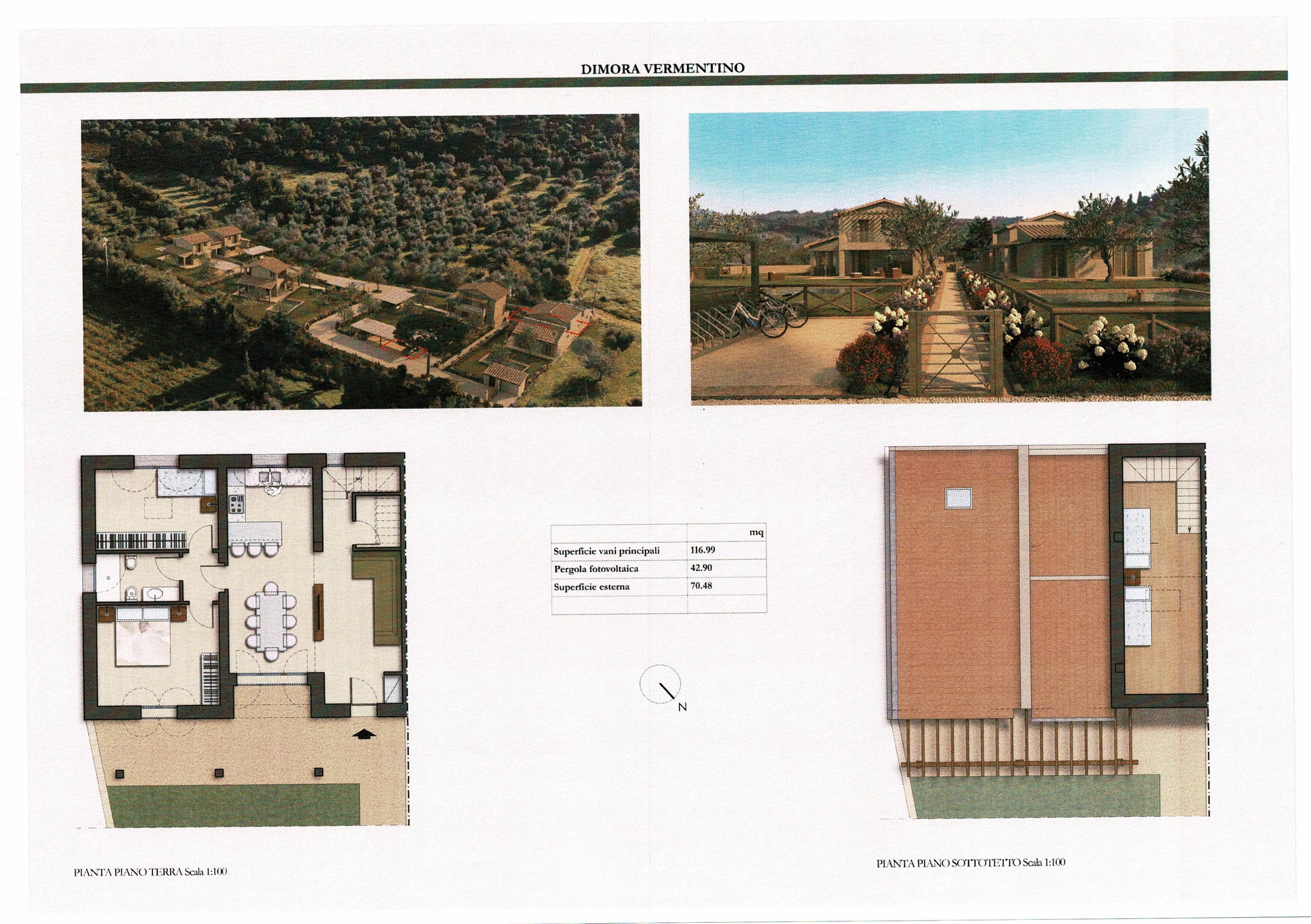 Edificio B - VILLETTA SAN GIOVESE : Ha ingresso in giardino privato , un ampio patio per godere di relax all'aperto, luminoso soggiorno, cucina abitabile, salotto, antibagno e bagno con doccia. Al piano primo due camere matrimoniali, di cui da una si accede alla terrazza solarium che gode di una vista sul mare e la costa, cameretta e bagno con doccia.