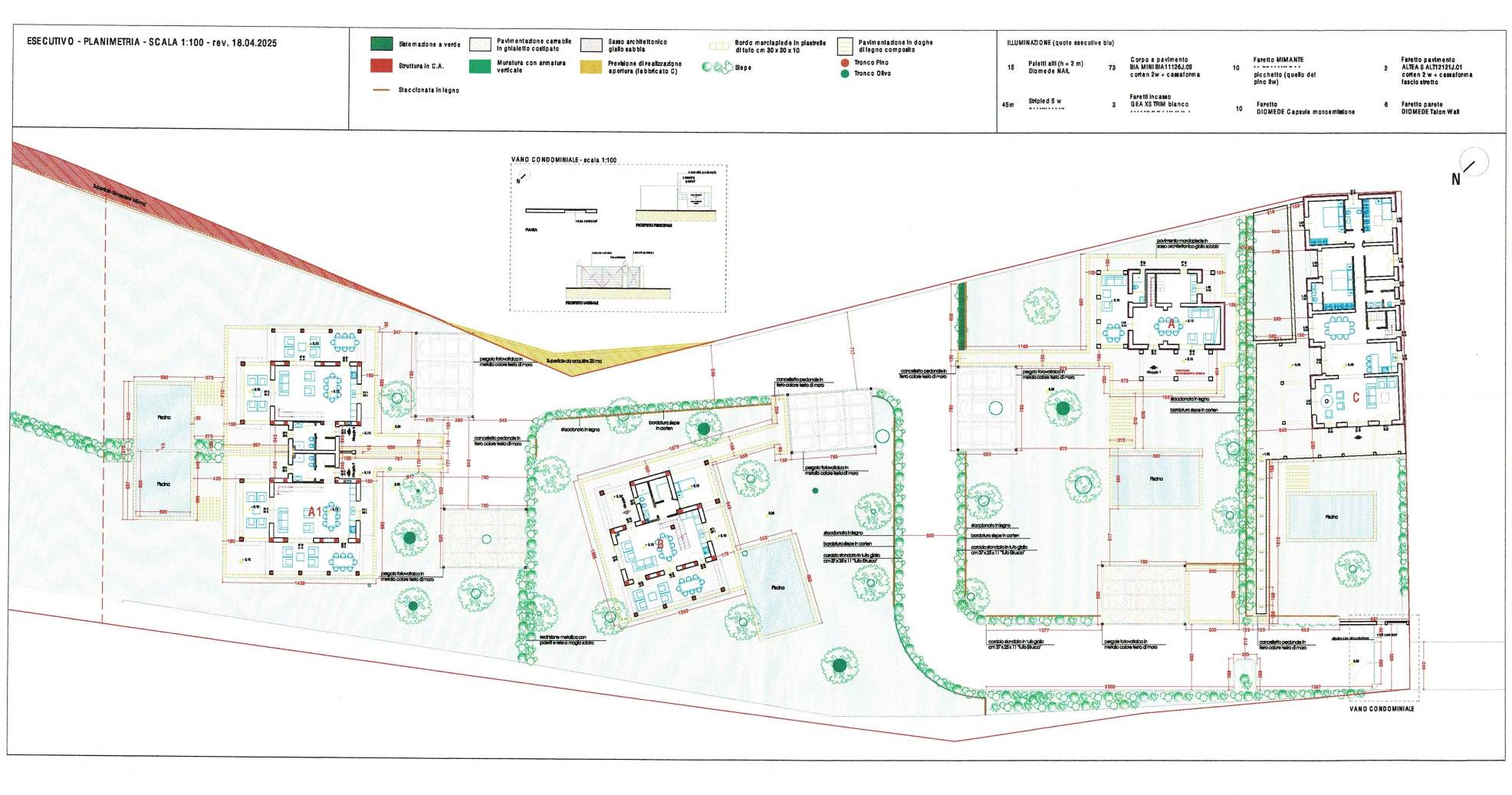 Edificio C - VILLETTA CABERNET e SAUVIGNON : Ha ingresso in giardino privato , un ampio patio per godere di relax all'aperto, luminoso soggiorno con cucina, salotto, veranda, ripostiglio, stanza studio e 2 bagni con doccia. Al piano primo 6 camere da letto, 4 terrazze solarium per godere di una vista sul mare e la costa, due bagni con doccia.
