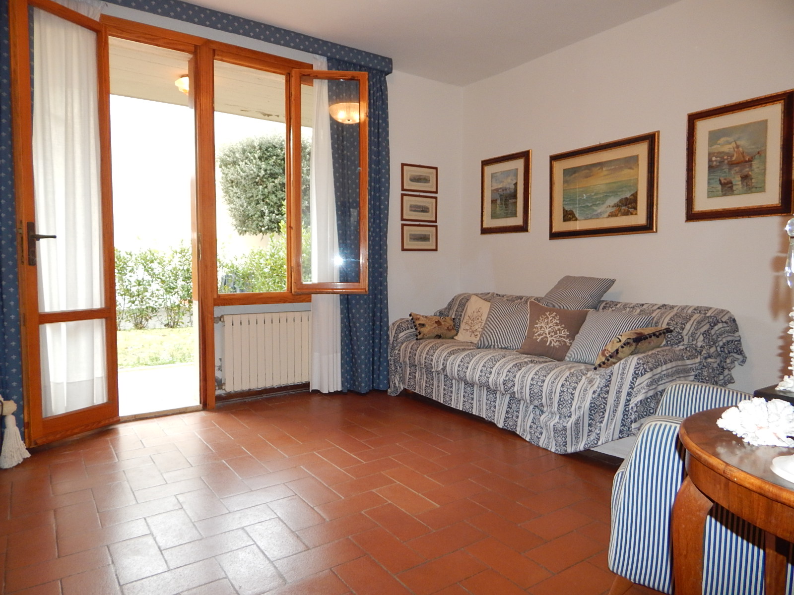 terra, con ingresso da giardino e porticato si apre una zona giorno ampia e