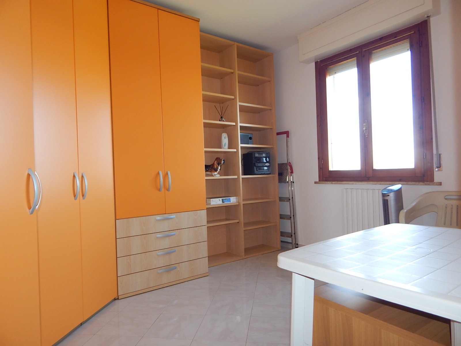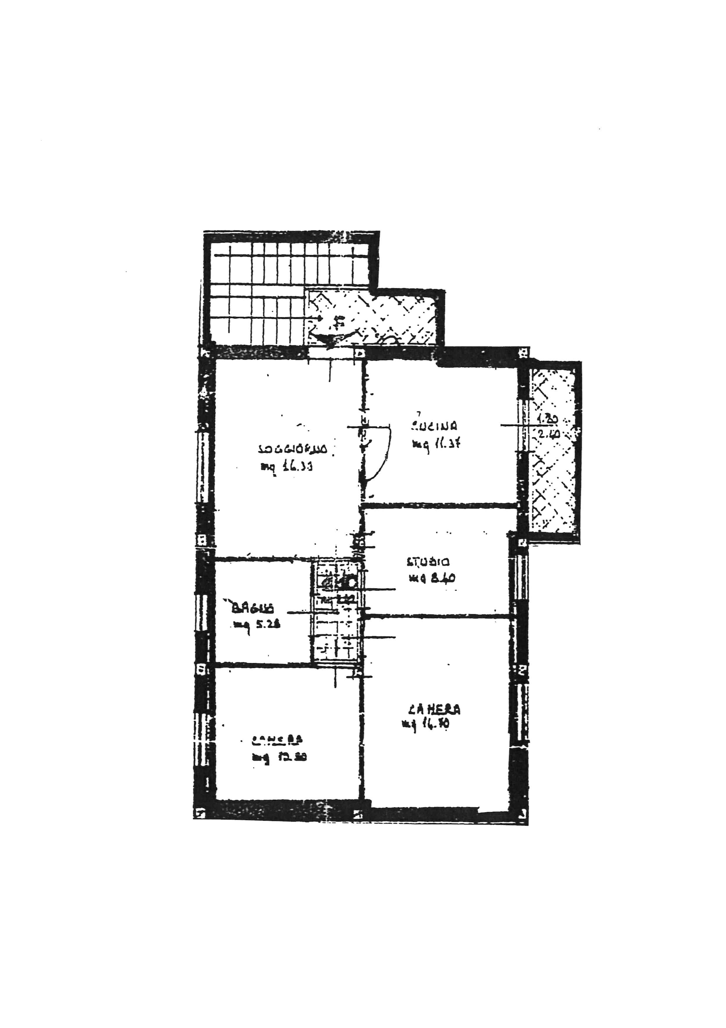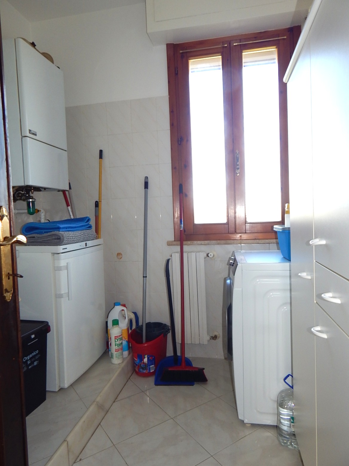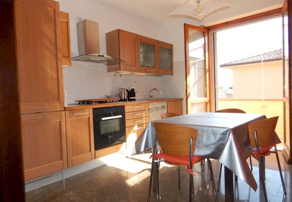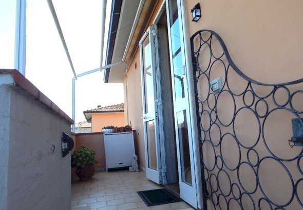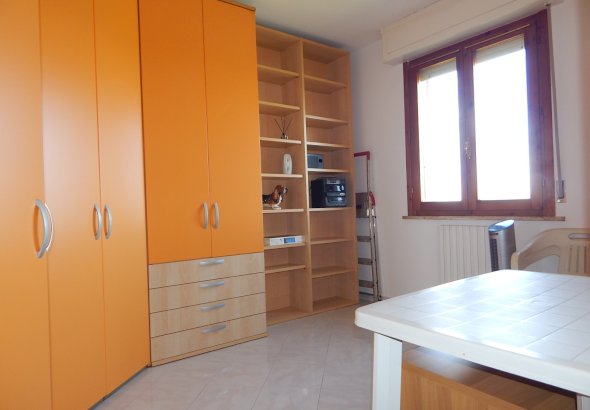 L'appartamento e' composto da un ampio soggiorno, cucina abitabile con accesso ad una terrazza con vista colline, disimpegno, bagno con doccia finestrato, due camere matrimoniali e uno studio adibito a lavanderia.