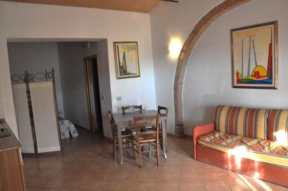 Riparbella - Località San Martino, a pochi chilometri della cittadina di Cecina e dal mare, nella natura con tanto verde e quiete, vendiamo Monolocale di recente costruzione al piano terra con ingresso da giardino privato di circa 30 mq. con loggia e un ripostiglio, rifiniture tipiche toscane quali travi in legno al soffitto e pavimento in cotto, volte e pareti con pietra faccia vista, pronto per essere abitato o come seconda casa per le vacanze o come investimento per l'affitto turistico.
