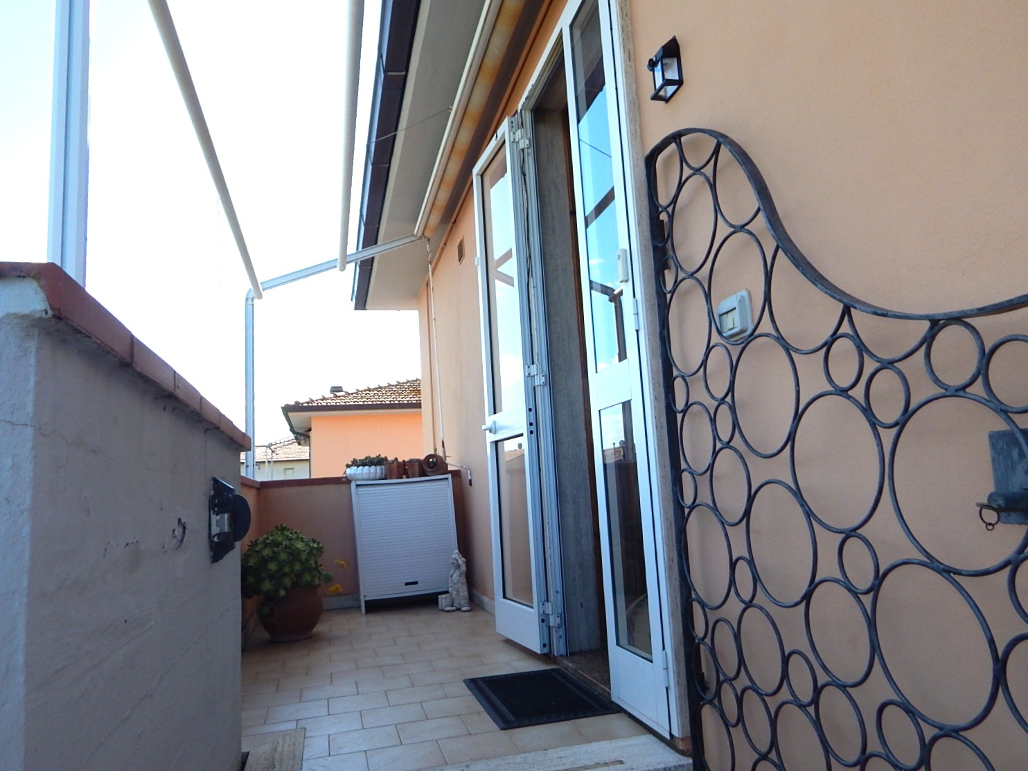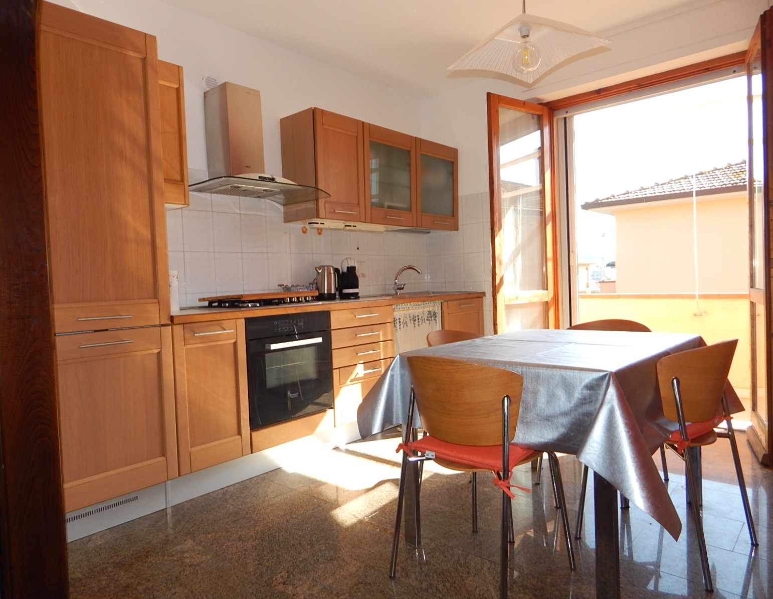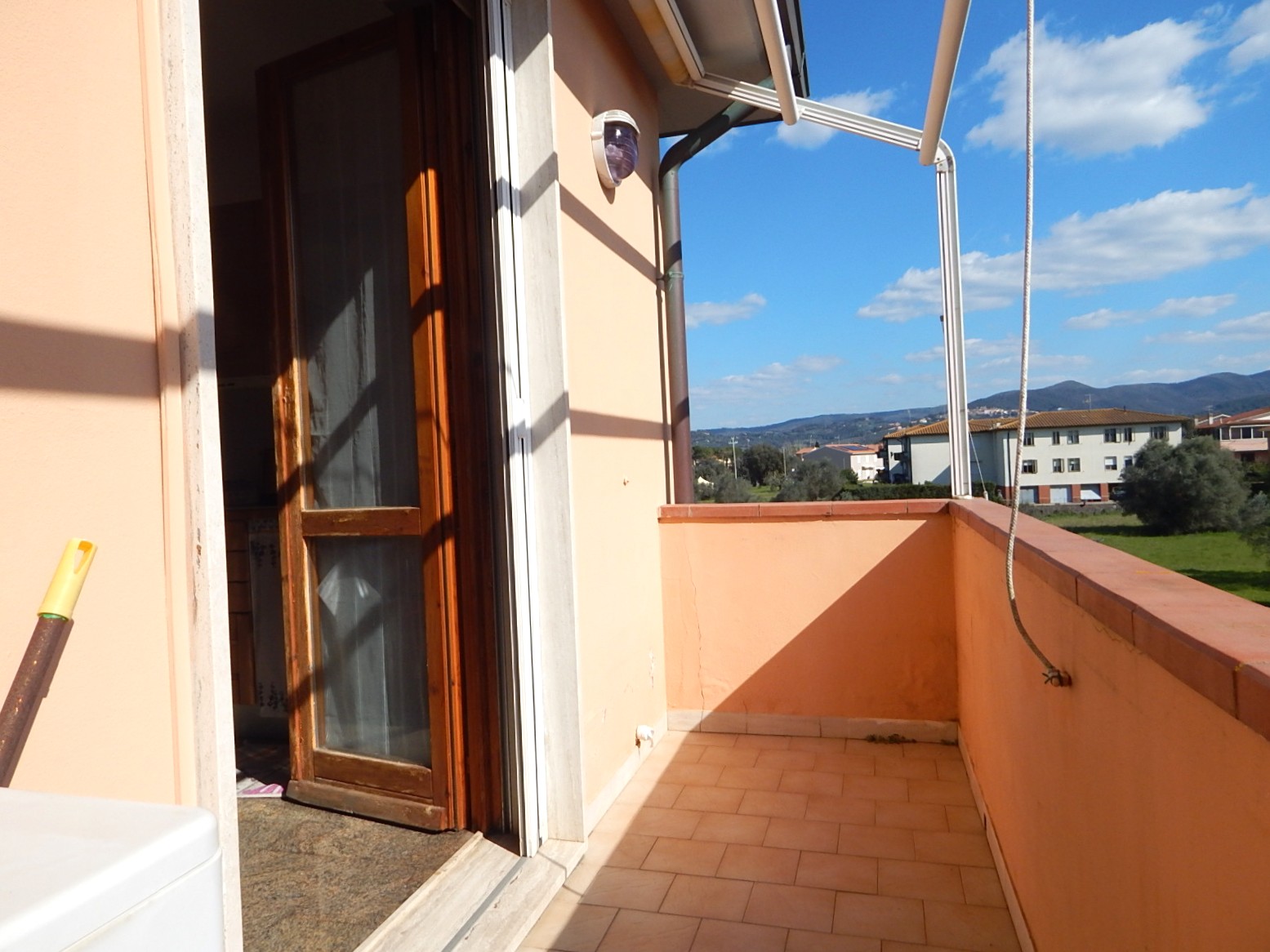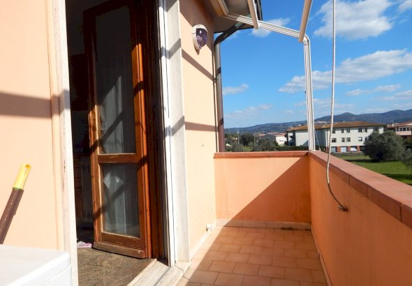 L'appartamento e' composto da un ampio soggiorno, cucina abitabile con accesso ad una terrazza con vista colline, disimpegno, bagno con doccia finestrato, due camere matrimoniali e uno studio adibito a lavanderia.
