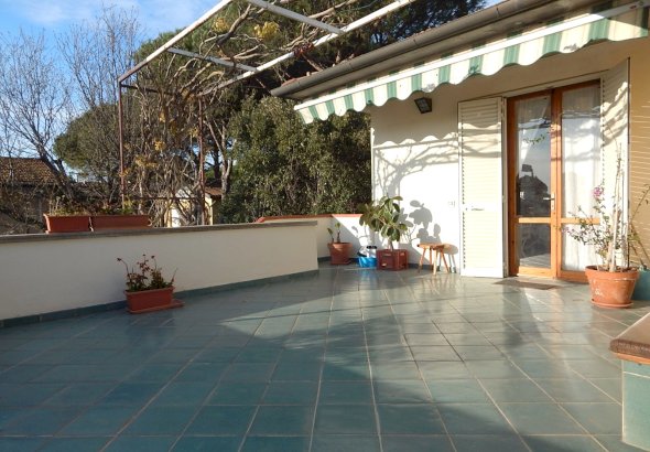 Marina di Castagneto Carducci - Zona Palme - Trilocale al primo piano, libero su tre lati, luminoso con grande terrazza di 45 mq. c.a. e giardino.