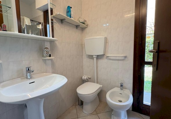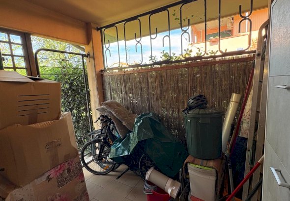 L' appartamento è una tipologia trilocale posta al piano terra angolare, oltre al grande giardino , troviamo un ampio loggiato coperto pranzabile , entrando è composta da un bel soggiorno con angolo cottura, disimpegno, comodo ripostiglio, studio adibito a cameretta e camera matrimoniale da cui si accede a un loggiato tergale, adibito a locale tecnico e lavanderia, bagno finestrato con doccia.