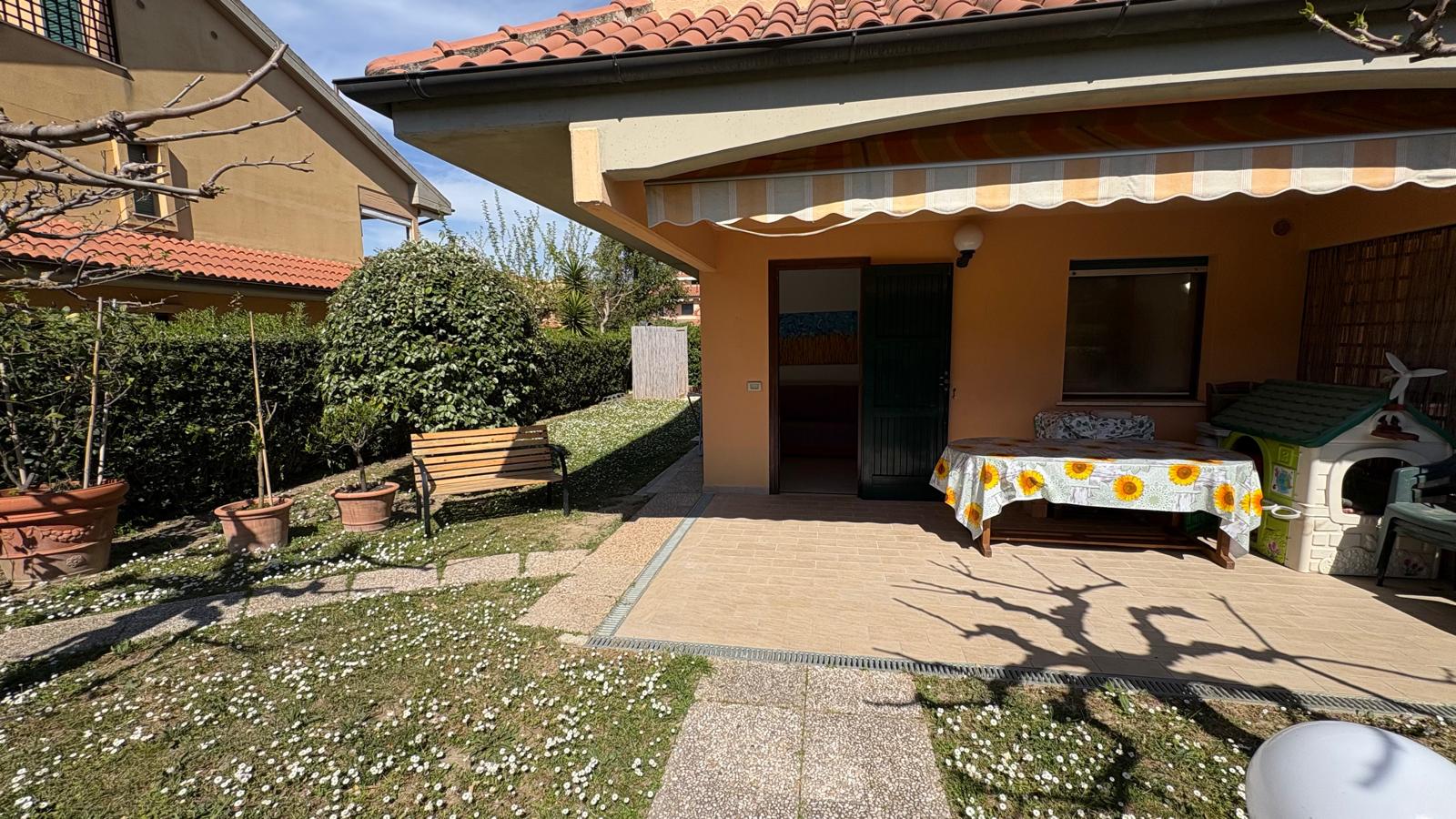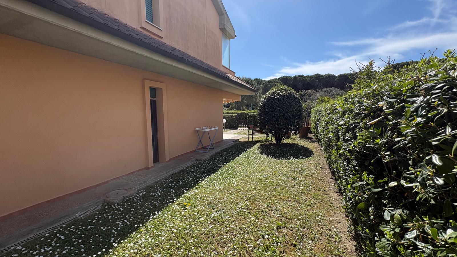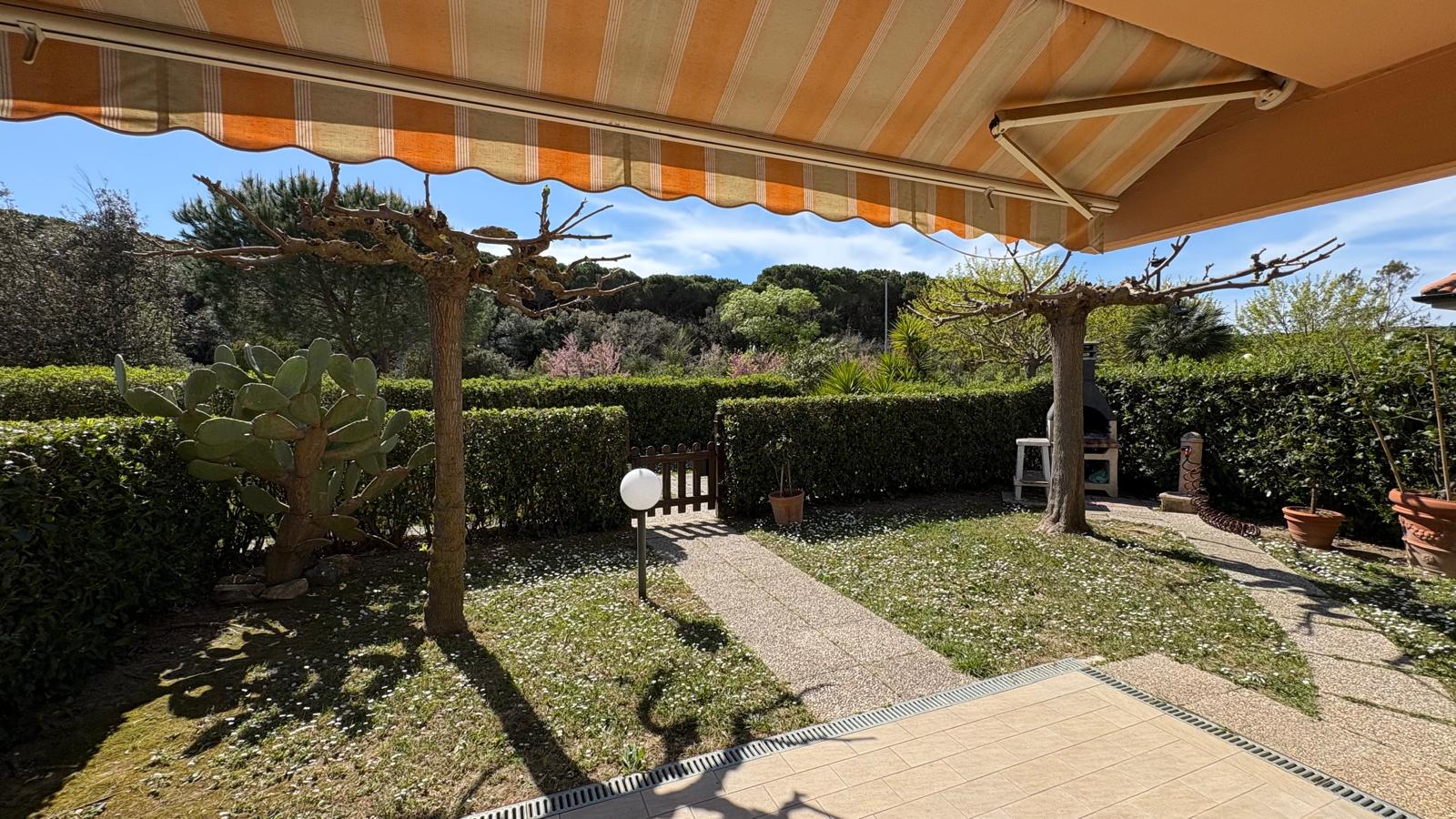 Marina di Castagneto Carducci - In zona tranquilla e residenziale, a 800 mt. circa dal mare, con vista sulla pineta e di fronte ad un ampio parco a verde, vendiamo trilocale angolare a piano terra, con ingresso indipendente da ampio giardino privato, con ottima esposizione, ben luminosa, attrezzato con doccia esterna e barbecue.