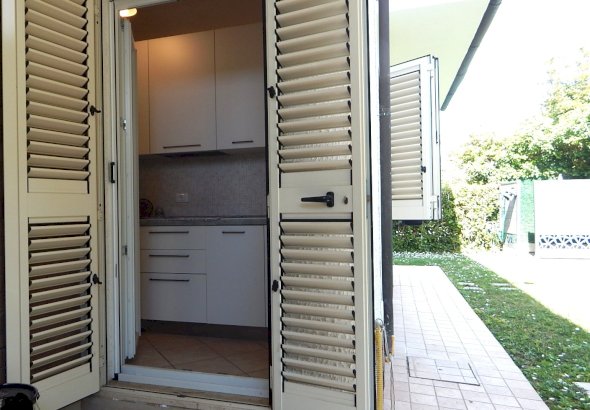 direttamente su una veranda e sul giardino, creando una piacevole continuità
