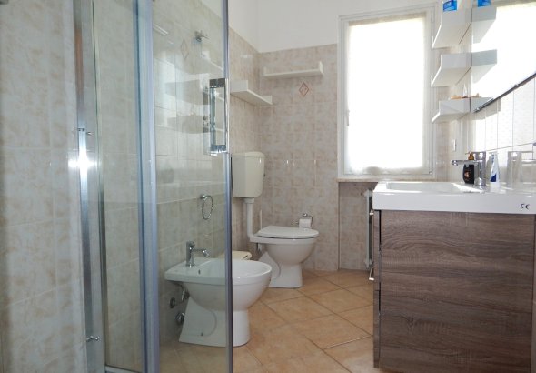 e da un bagno finestrato con doccia.