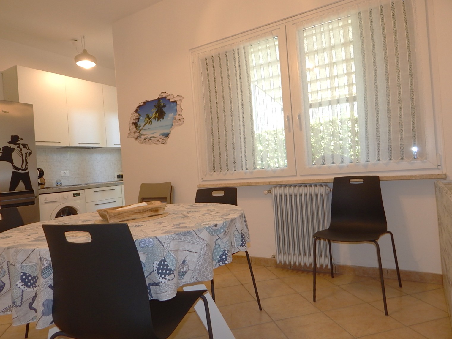 bagno di servizio, una sala da pranzo e un pratico cucinotto che si apre
